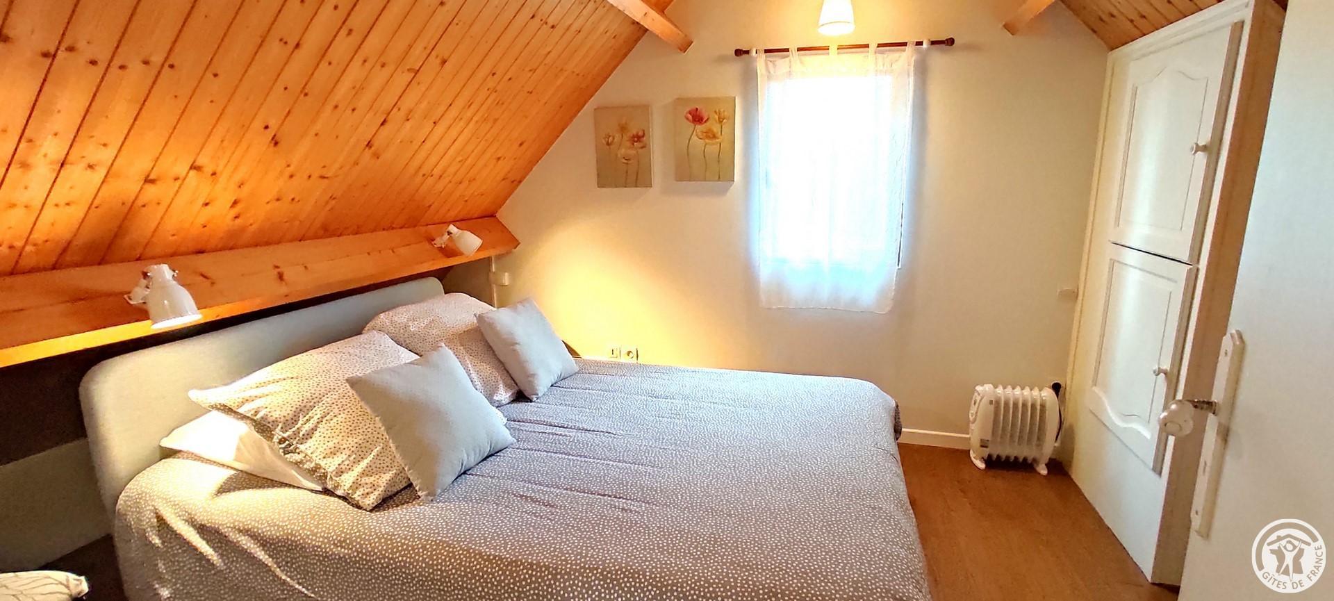 Gîte adjoining on 2 levels. On the 1st floor : 2 bedrooms (1 double bed - 2 single beds) - shower on the bathroom - wc.